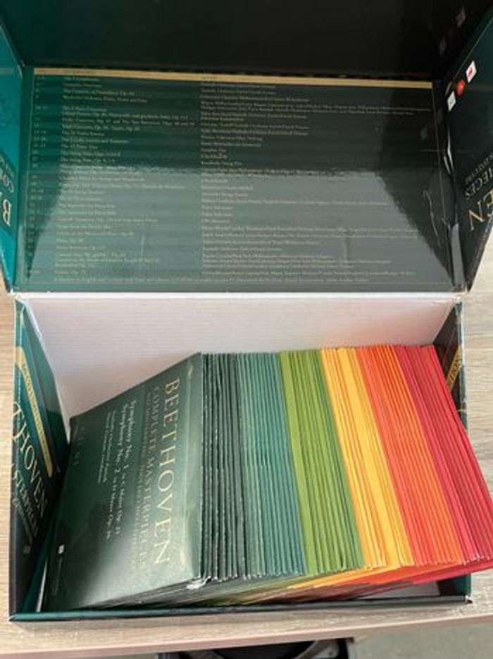 Coffret intégral Beethoven L’œuvre intégrale Tous les chefs-d’œuvre Classique Sony Cd 1 à 9 Cd 10 à 20 Cd 21 à 30 Cd 31 à 39 (sauf le 37) Cd 40 à 50 Cd 51 à 61 (59 sans pochette) Certaines pochettes ont été réparées mais le coffret est neuf coffret de 59 CD Valeur neuf 72€