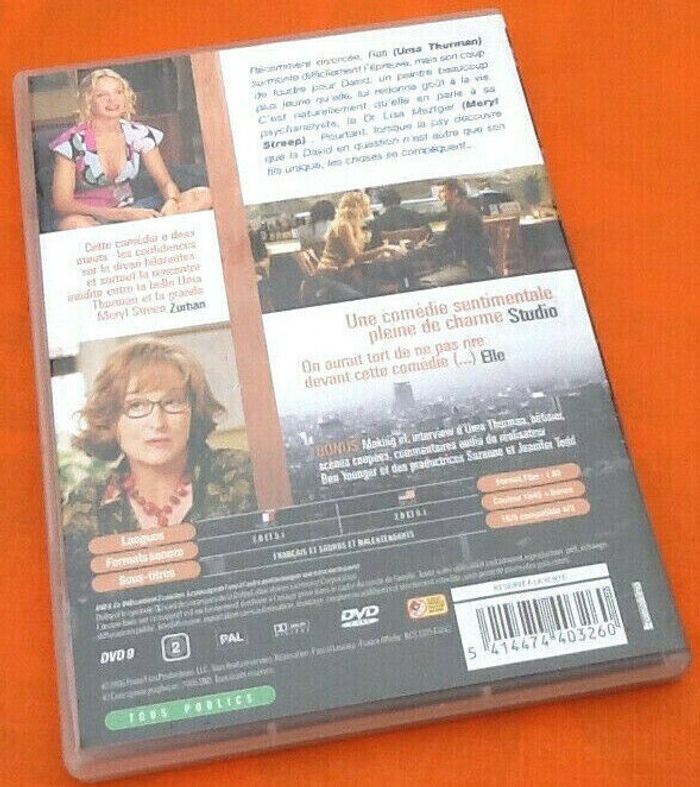 DVD Petites confidences (à ma Psy) Un film de Ben Younger Avec Uma Thurman, Meryl Streep, Bryan Gree... (2006) Une psy de 60 ans apprend qu'une de ses patientes de 40 ans sort avec un jeune homme de 20 ans. Jusque-là, rien à redire, jusqu'au jour où... la psy en question réalise que le jeune homme est... son propre fils ! Arrivera-t-elle à rester objective et professionnelle en apprenant des détails sur la vie privée de son fils ?