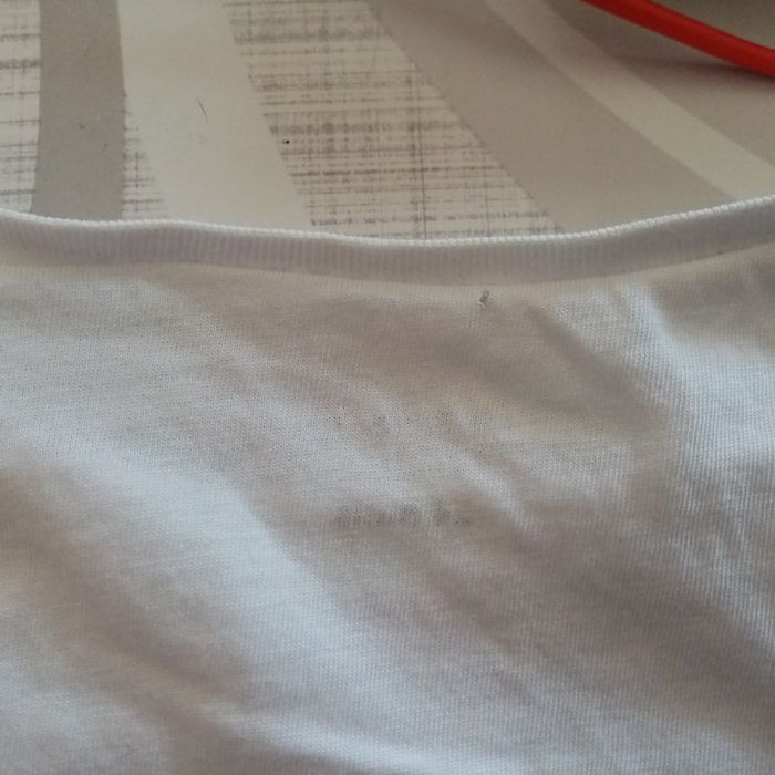 T-shirt blanc Mini trou que je viens de voir au niveau du col dans le dos (voir les 2 dernières photos)