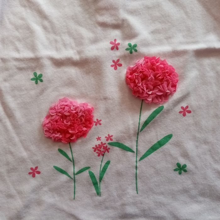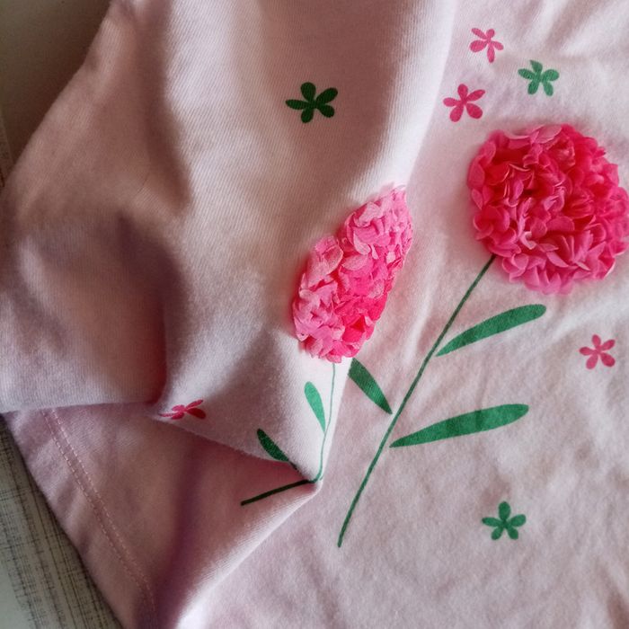 T-shirt rose manches courtes avec dessins de fleurs en relief T-shirt assez long à porter avec un legging Fermeture par boutons dans le dos