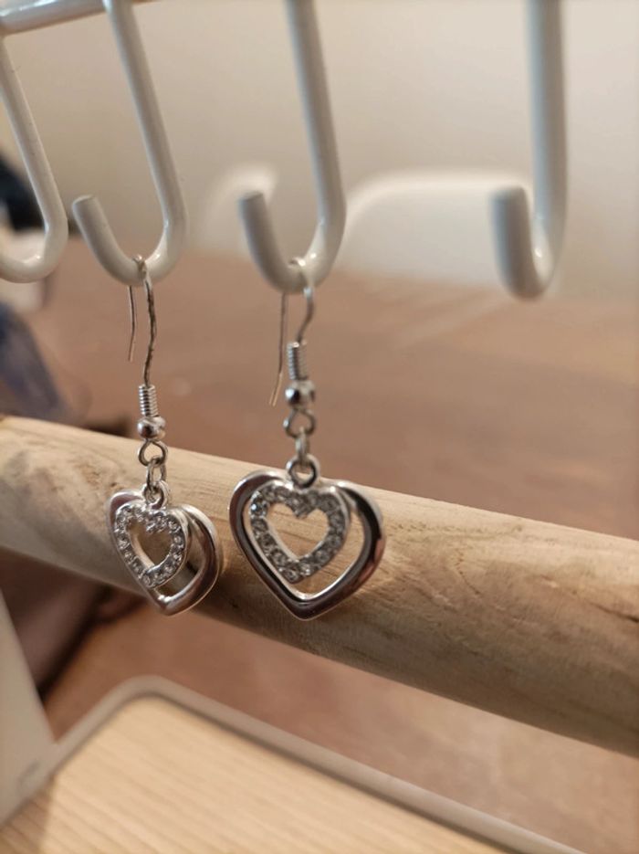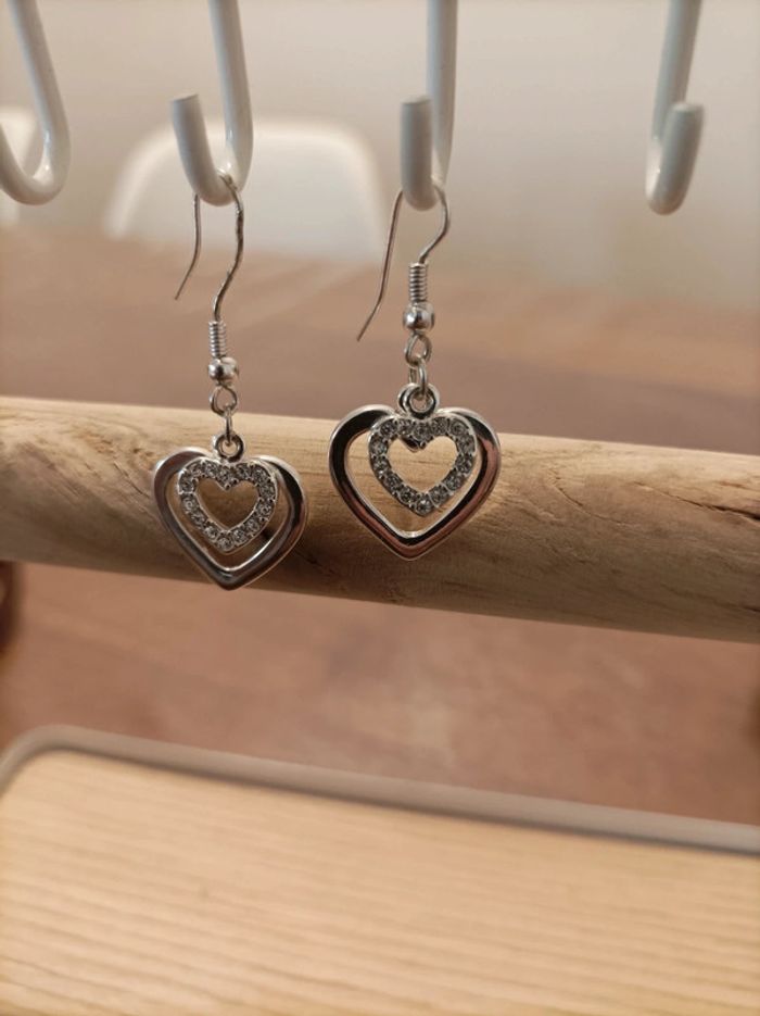 #mangafan87femme Je vends une paire de boucle d’oreille en forme de cœur. Deux cœurs par boucle. Boucle neuve jamais utilisé. Longueur 5 cm. Réponse rapide, envoi sous deux jours, colis bien protégé. Envoi par mondial relais de préférence, remise en main propre possible. Si vous avez des questions, n’hésitez pas