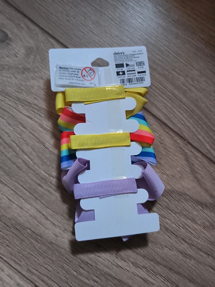 3 barrettes noeuds de chez claire's jaune violet multicolore