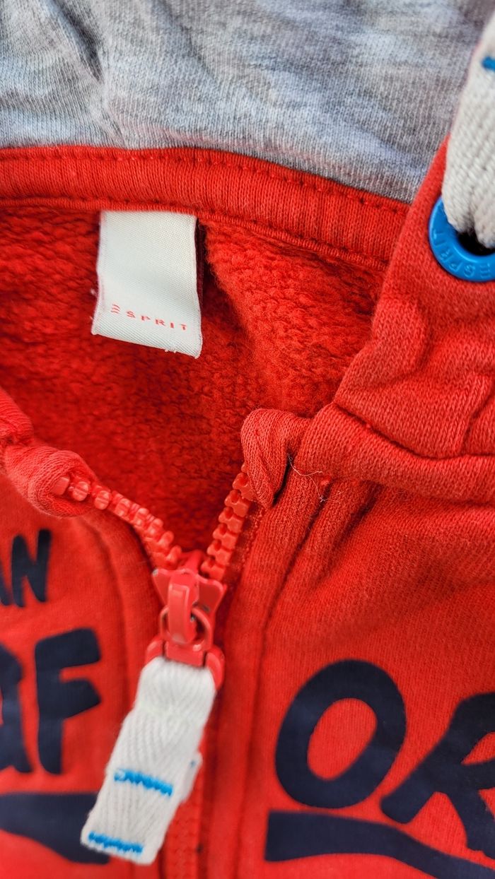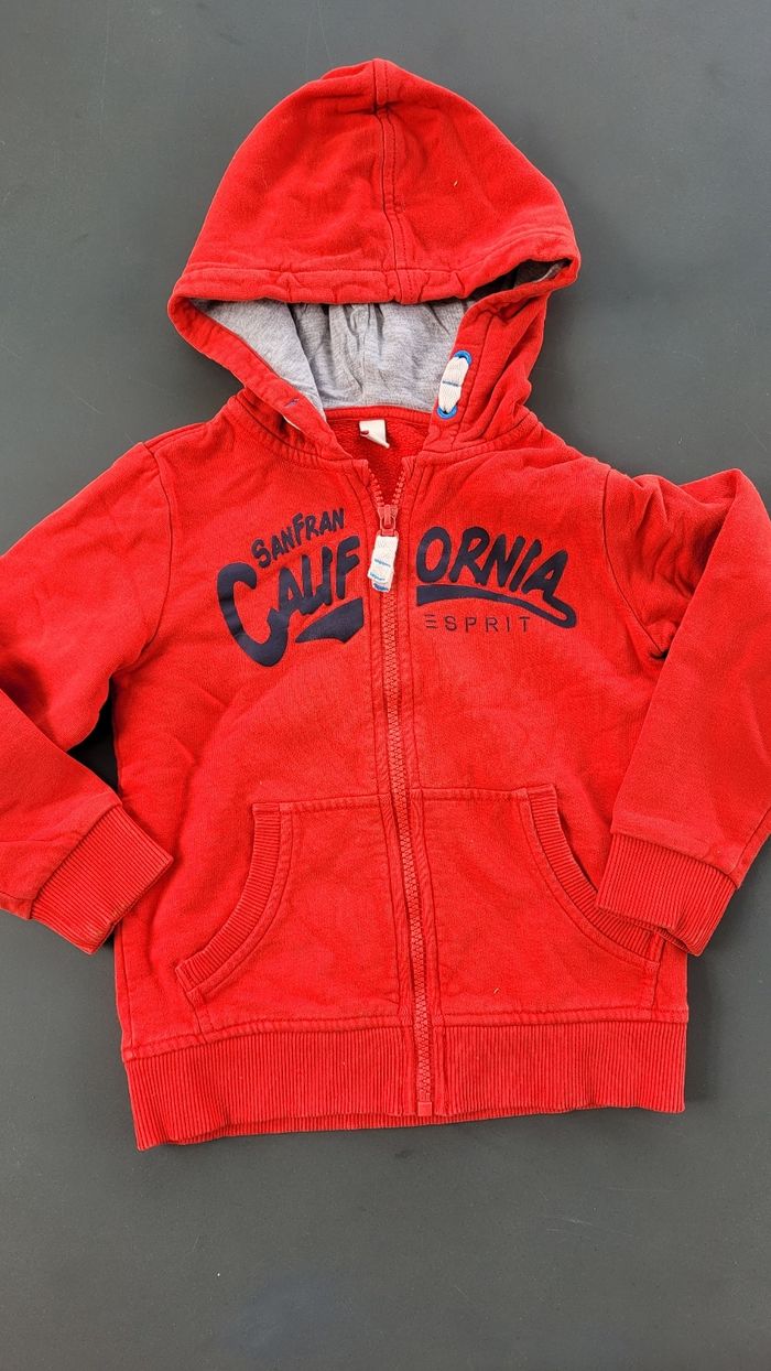 Gilet veste zippée rouge Esprit 4.5ans "SanFran California" à capuche.