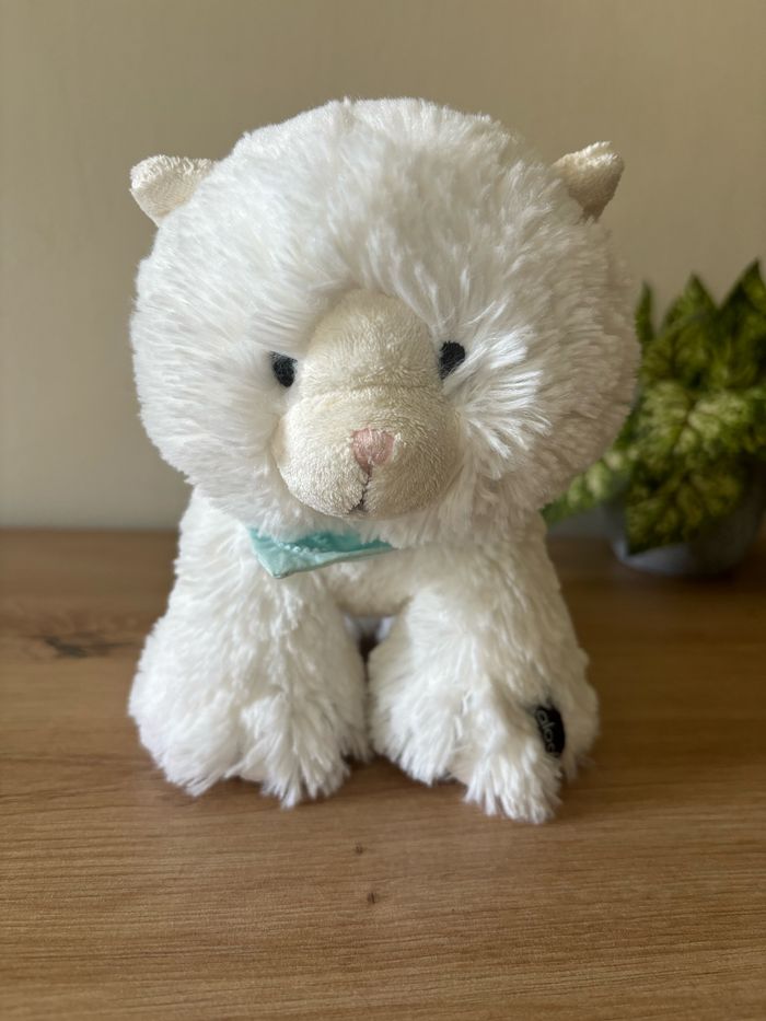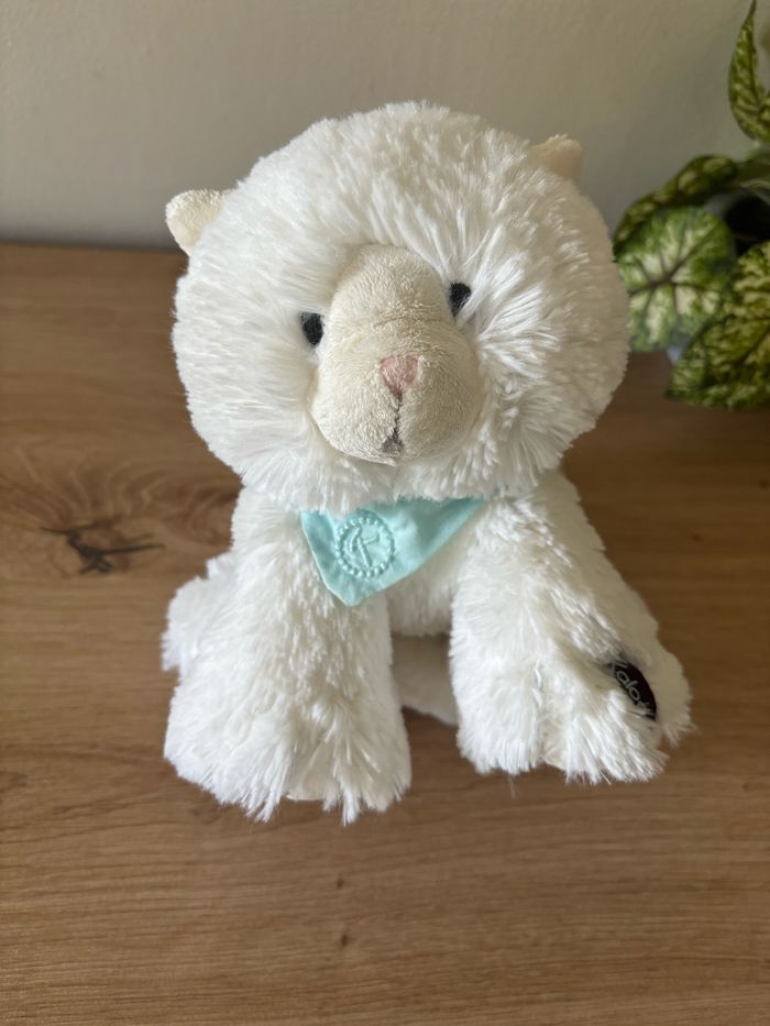 Très bon état 18 cm sans compter la queue Envoi rapide #doudouchatblanckaloo #peluchechatblancbandanableukaloo