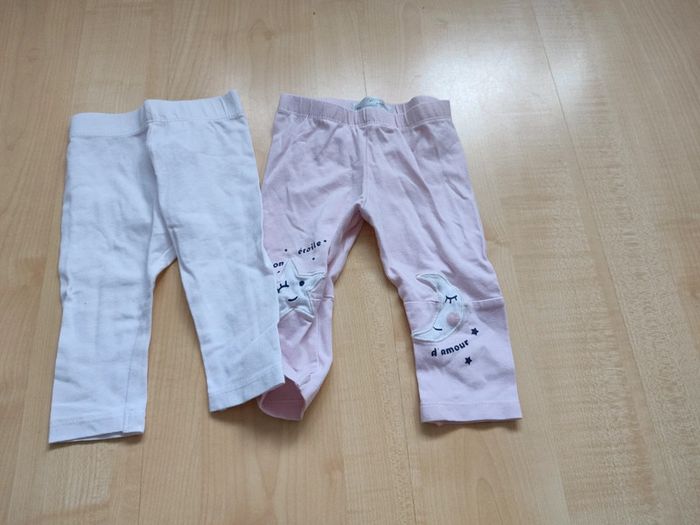 Lots de deux leggings un rose et un blanc. Très bon état Marque les petits cailloux Taille 6 mois