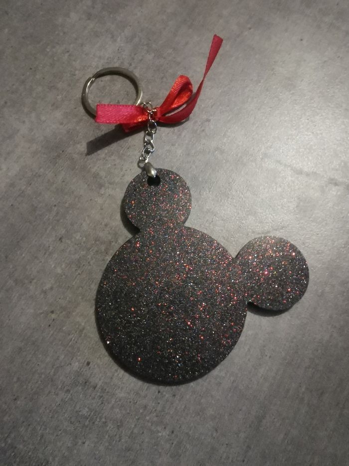 Porte clé Mickey noir à paillettes rouges de 12,5cm de long au total