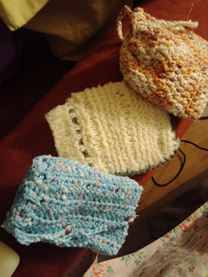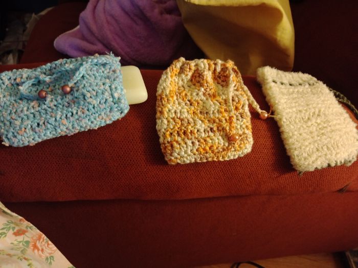 3 économiseur de savons fait main en coton. Ne jetez plus vos restes de savons. Les mettre dans le petit sac, le passer sous l' eau et se laver avec. Plus de gaspillage.
