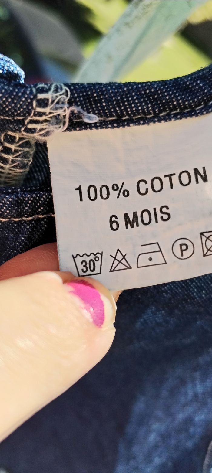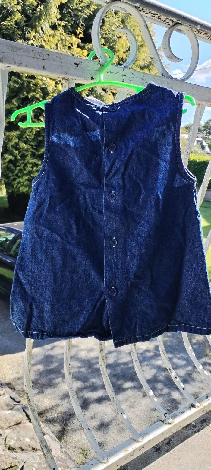 Robe en jean avec 2 poches à l'avant. Marque inconnue. Taille 6 mois. Comme neuve. Que mondial relais ou Relais Colis.