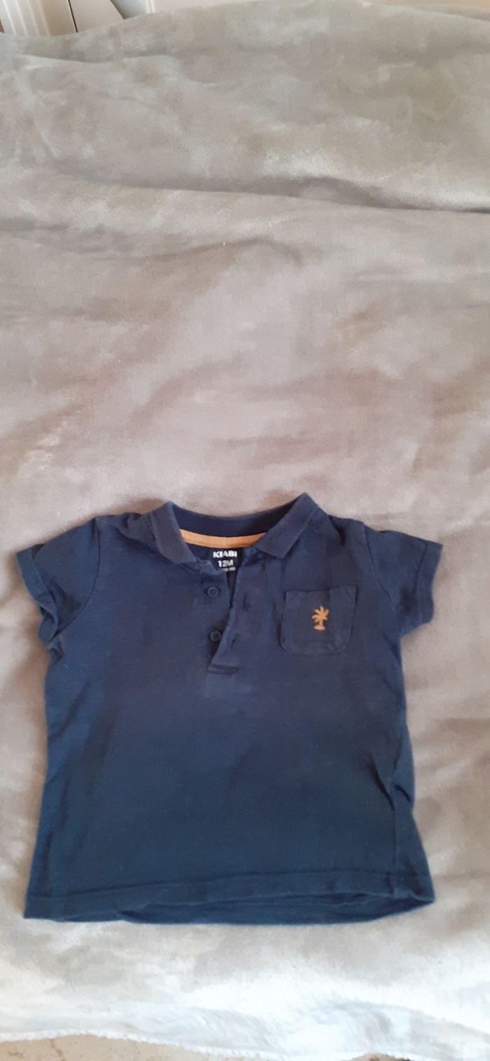 Polo bleu marine MC avec un.palmier orange Un peu passé devant mais léger