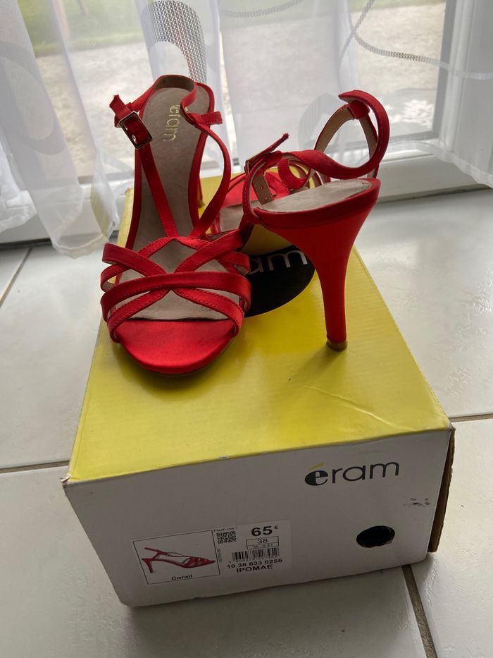 Bonjour vends sandales à talons en taille 38. Couleur corail Porté 1 fois . Très bon état