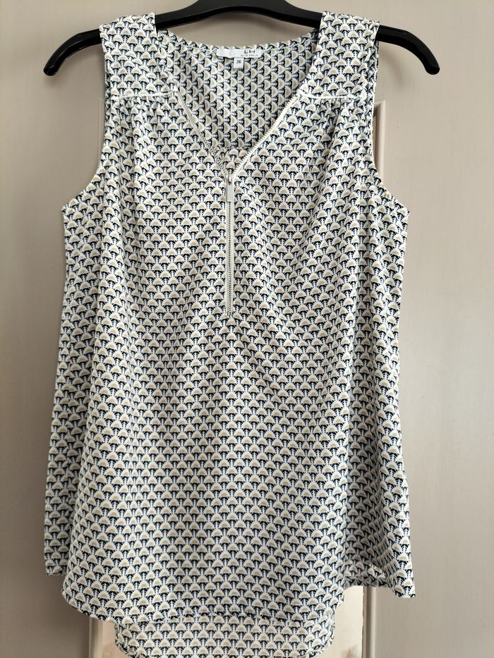 Débardeur avec fermeture éclair devant et un peu plus long au dos 100% polyester aisselle à aisselle 45cm long devant 61cm dos 65cm taille S