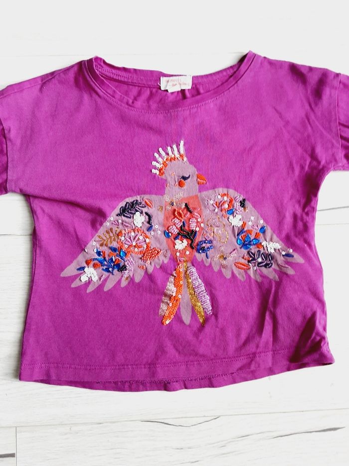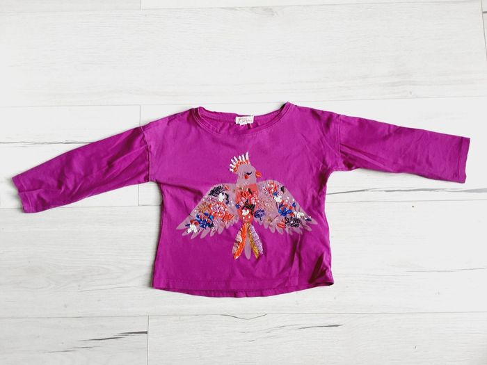 Vêtement fille tee-shirt manches longues à perles oiseau Du pareil au même DPAM 4 ans - photo numéro 1