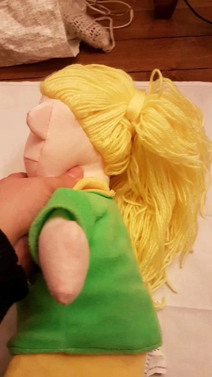 ⬇️mes autres annonces de jeux et jouets👉 #cg89jouets 😁 réductions activées des 2 articles ! Une poupée de chiffon avec une bouille trop rigolote, et une chevelure de lionne. Petit défaut de couture, voir photo. Elle mesure environ 42 cm de hauteur. Bon état #poupee #poupon #chiffon