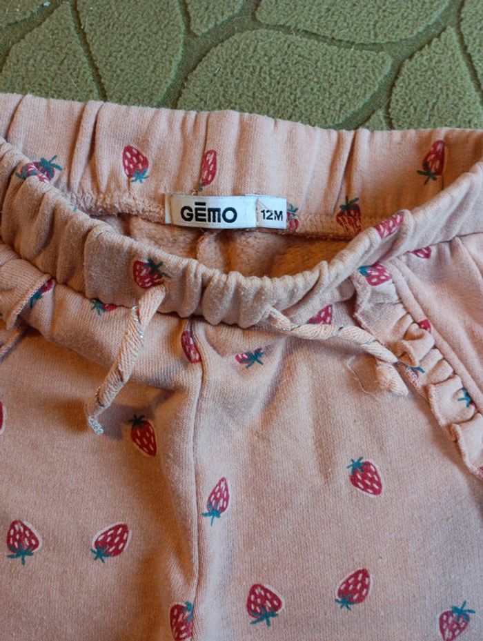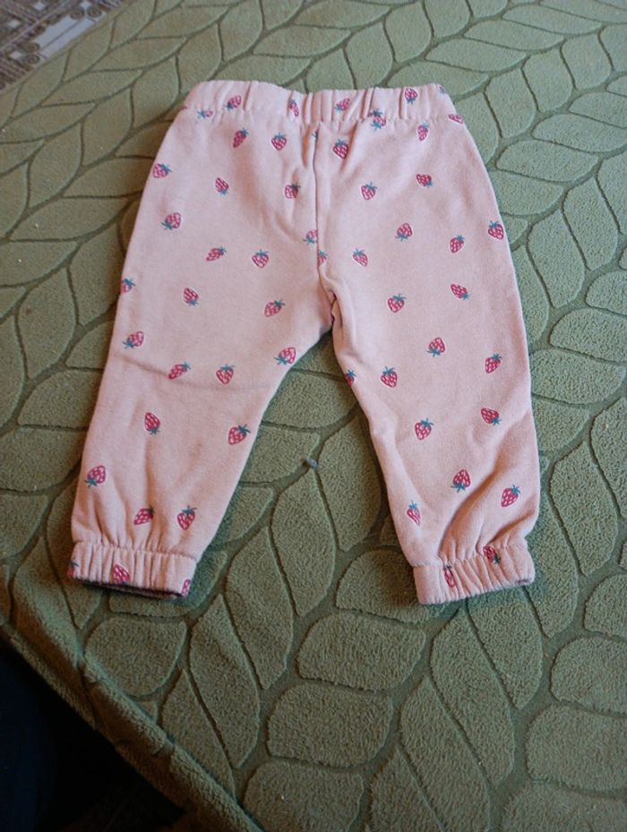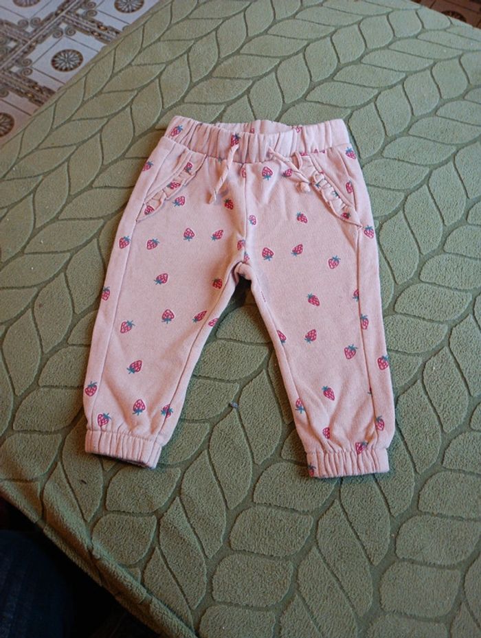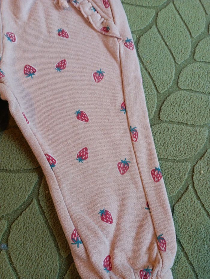 Jogging molletonné, Motifs petits fraises, Quelques petites bouloches au niveau des genoux, Taille 12 mois