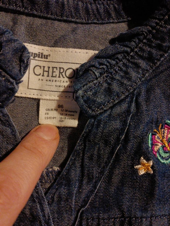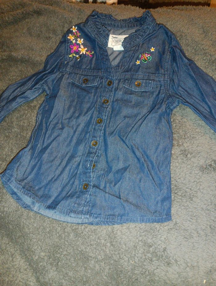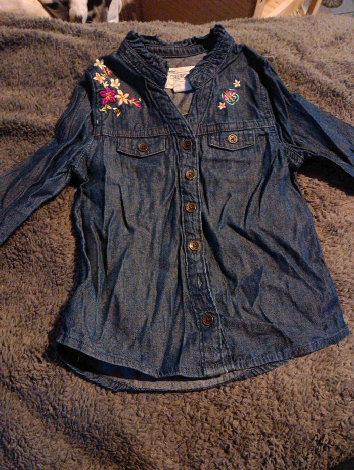 Chemise en jean, Fleurs brodées Taille 12-18 mois, 86 cm