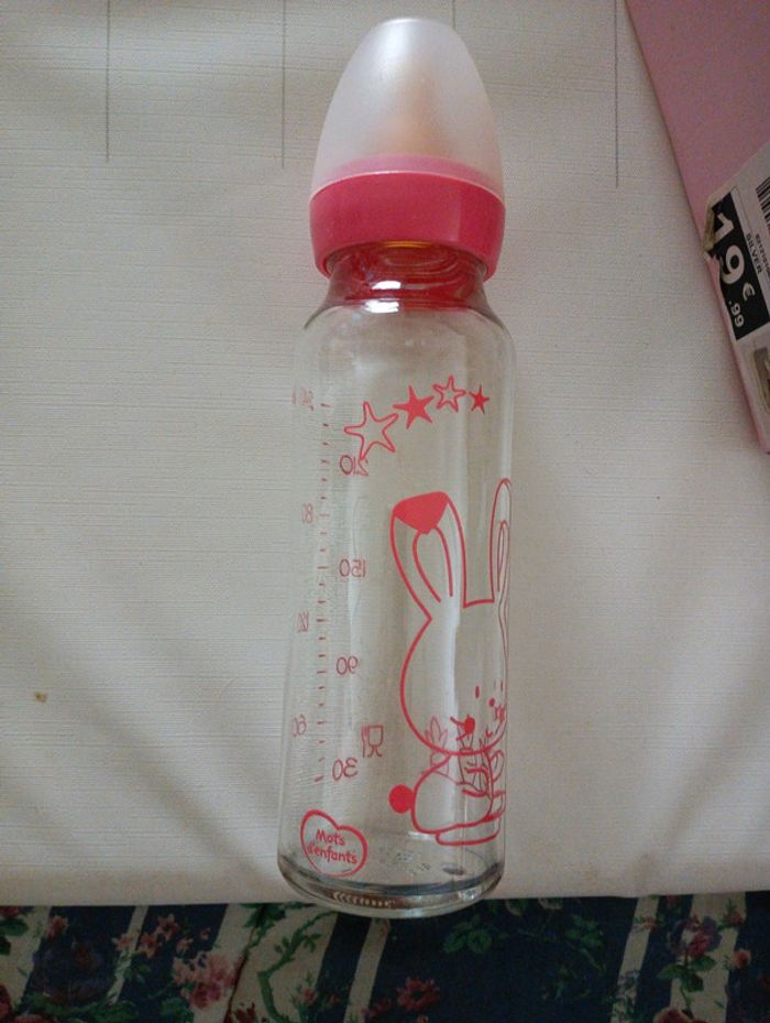 Biberon mots d'enfants en verre, Neuf jamais utilisé