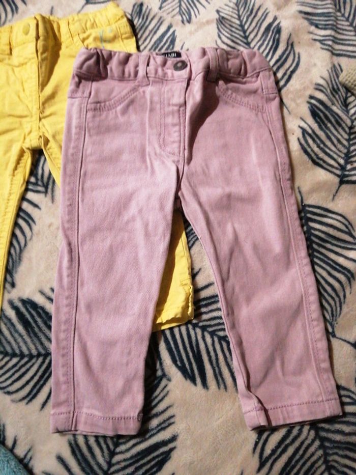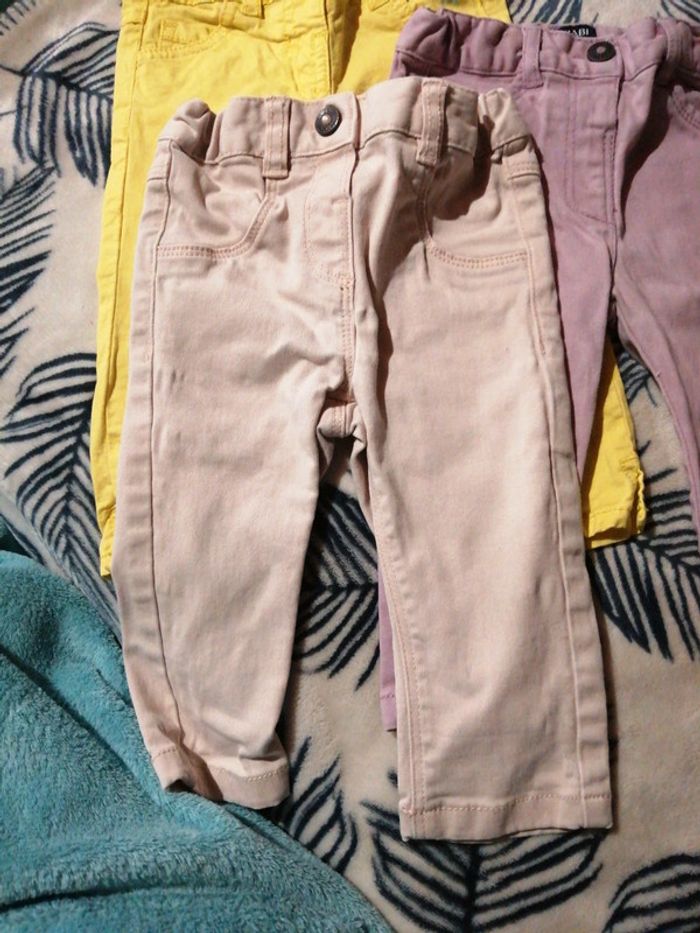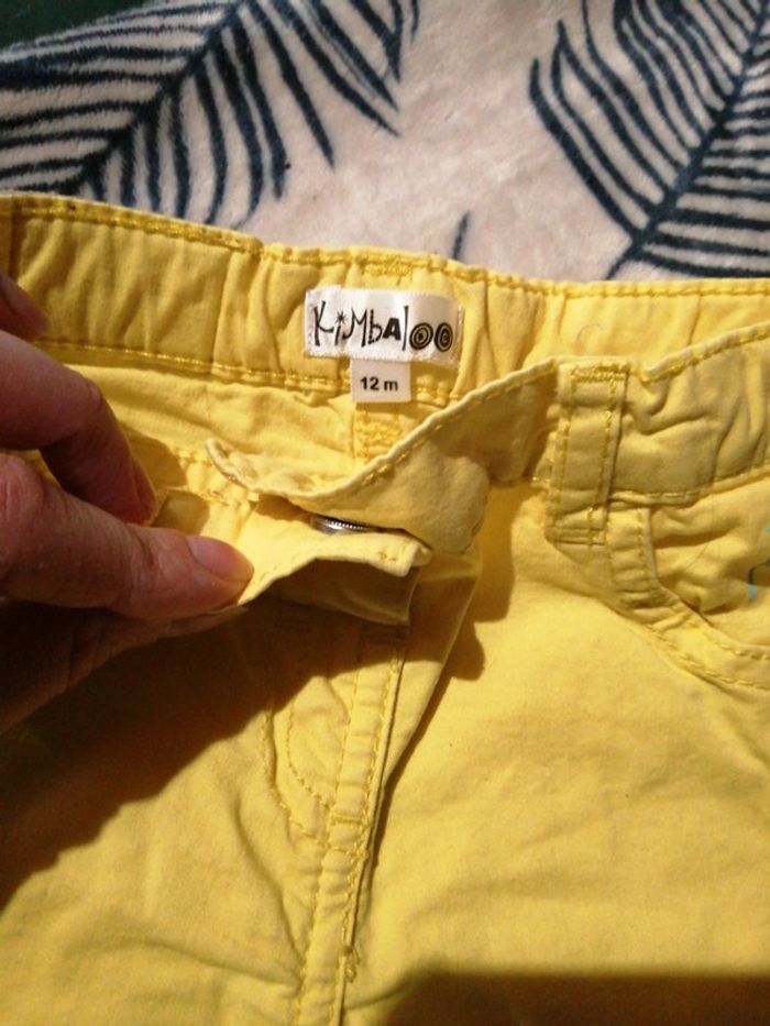 Lot de 3 jeans 12 mois, 2 de la marque kiabi, beige et parme, 1 de la marque kimbaloo, jaune, En très bon état.