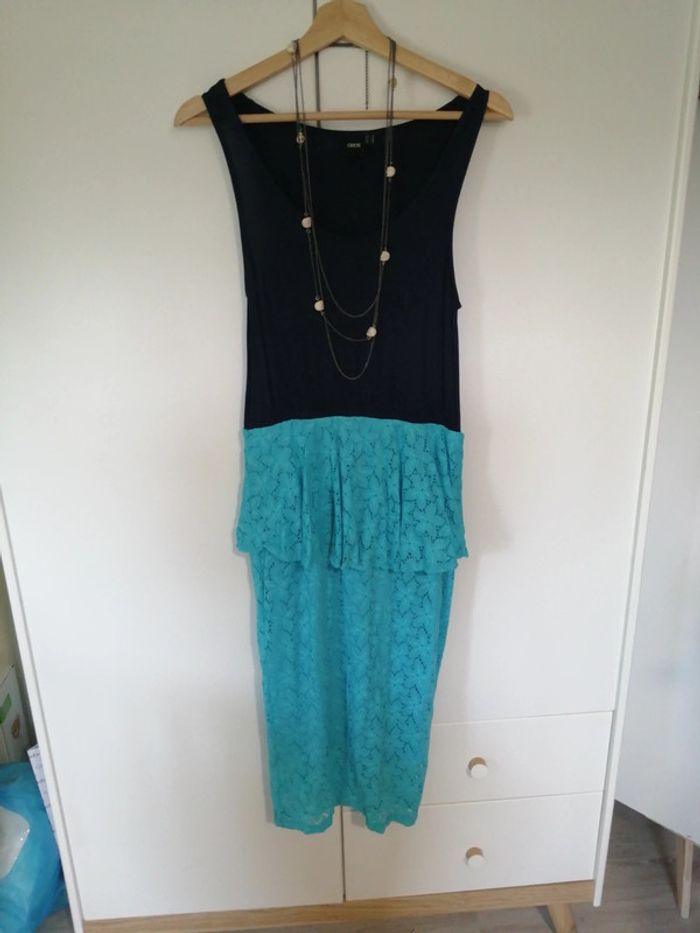Jolie robe bicolore dentelle, Modèle fourreau, Asos taille 38