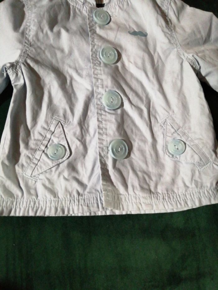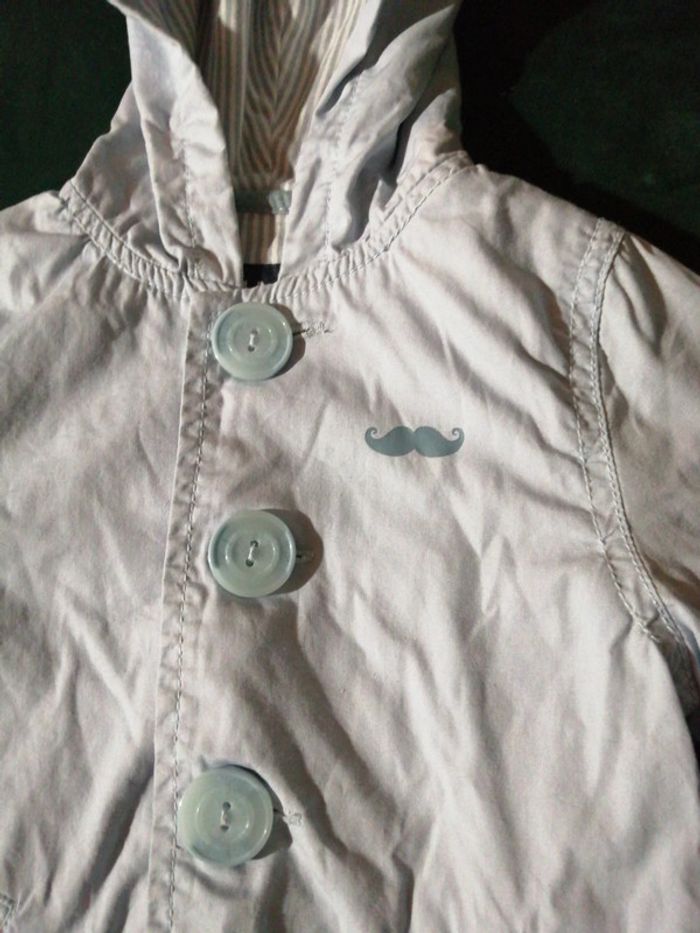 Imperméable bleu ciel, Petitz moustache en guise de motif, Rarement porté.