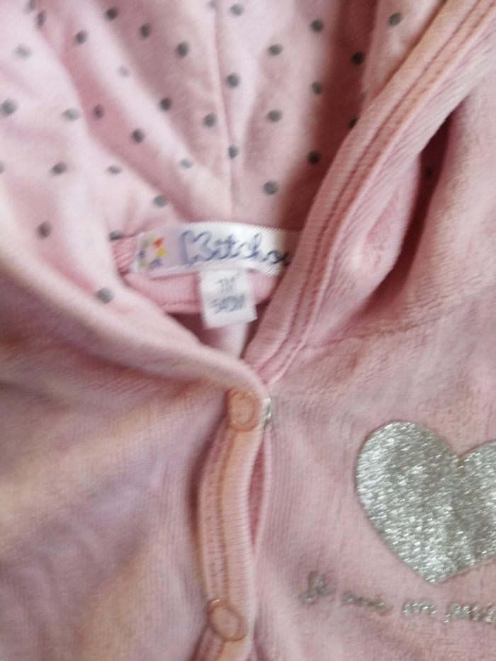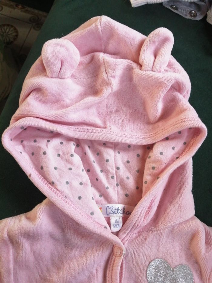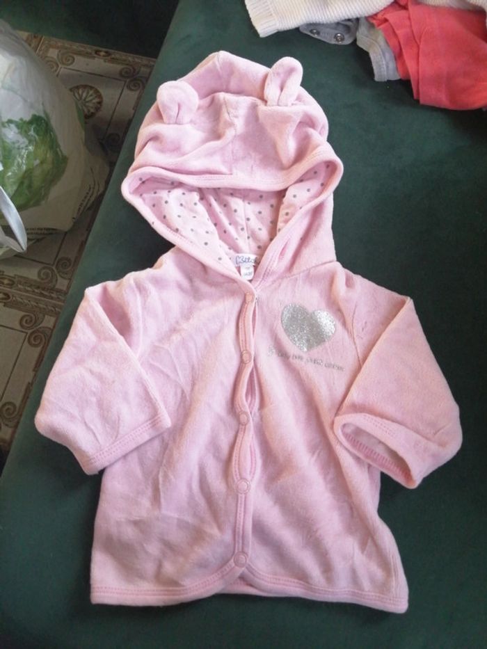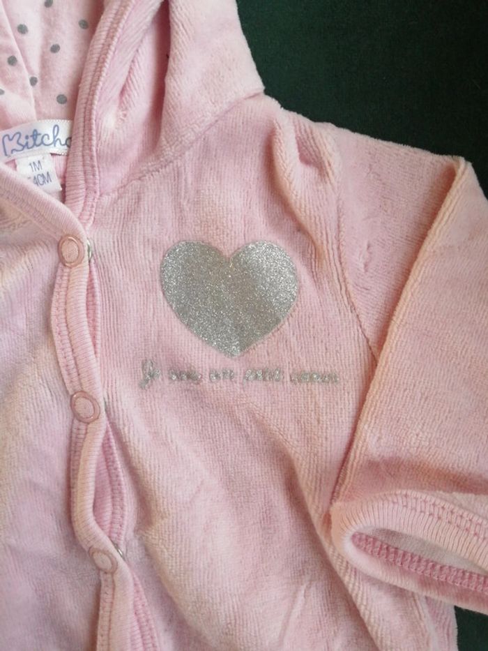Petit gilet velours rose, Inscription je suis un petit coeur, Taille 1 mois, Marque kitchoun