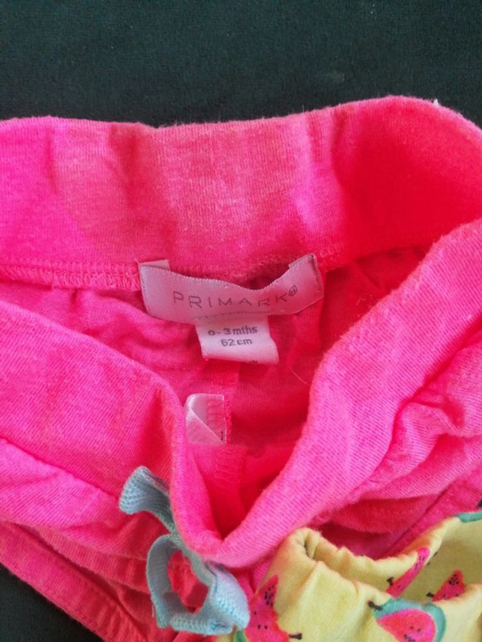 Lot de 2 petits shorts pour l'été, Taille 0-3 mois, 62 cm, Marque primark, En très bon état.