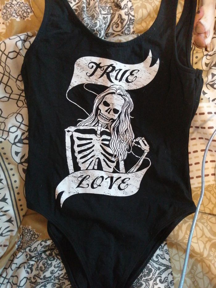 💀 Body noir tête de mort "true love", 💀 Comme neuf, porté une ou deux fois, 💀 Taille S.