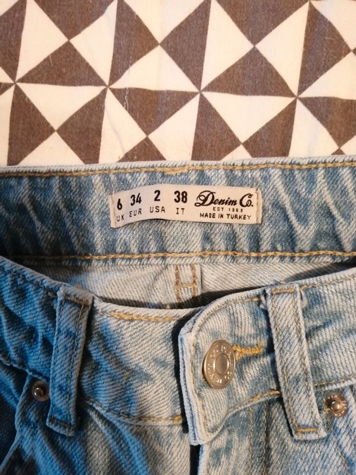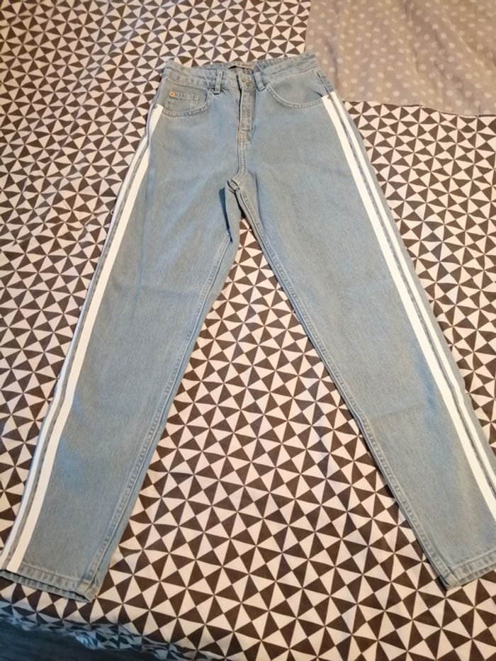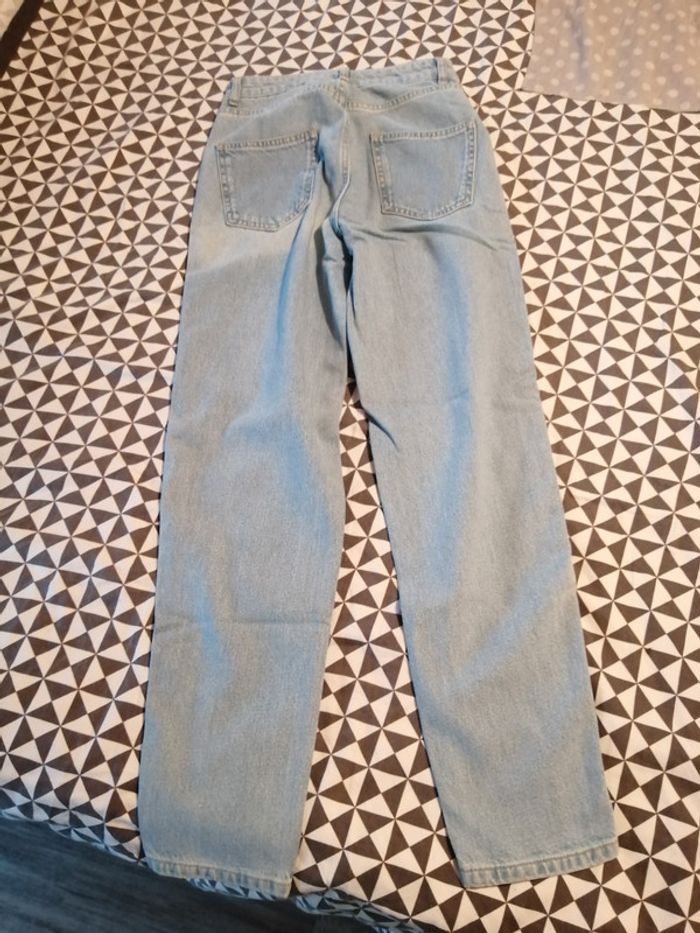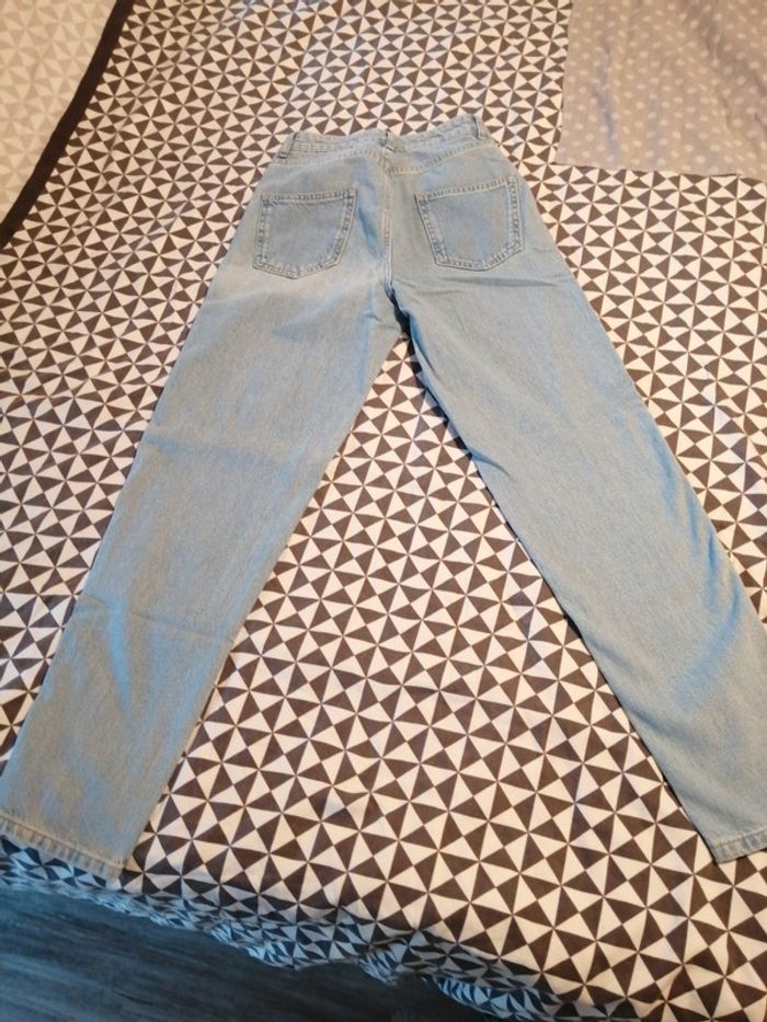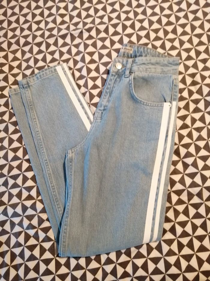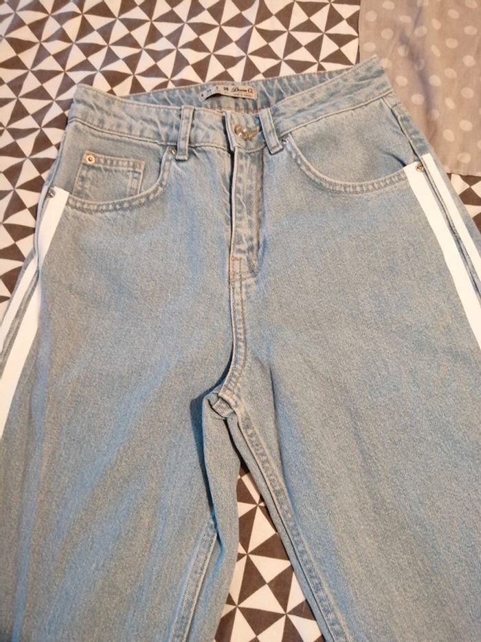 🐦 Jean Mom bleu clair 🐦 Bandes blanches sur les côtés 🐦 Taille haute 🐦 Neuf jamais porté