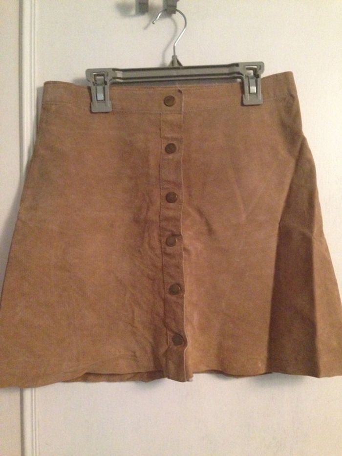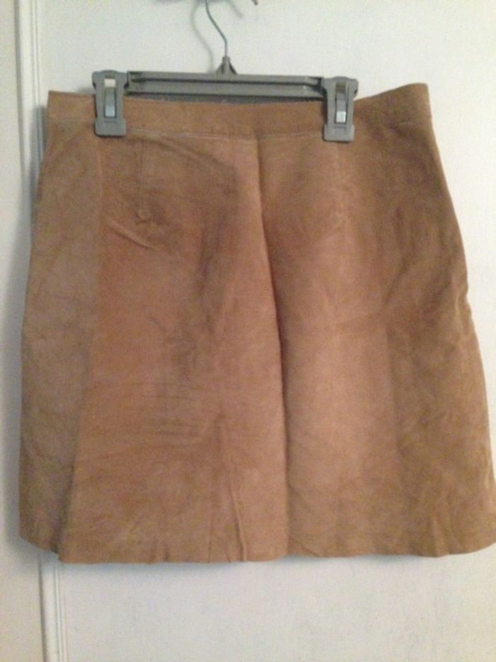 🌻 jupe trapèze en cuir marron 🌻 taille 34 🌻 longueur 41 cm 🌻 en très bon état, comme neuve