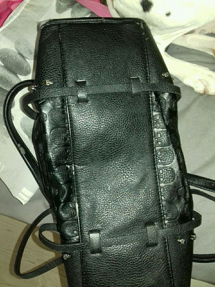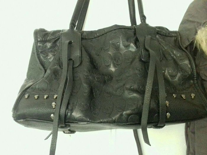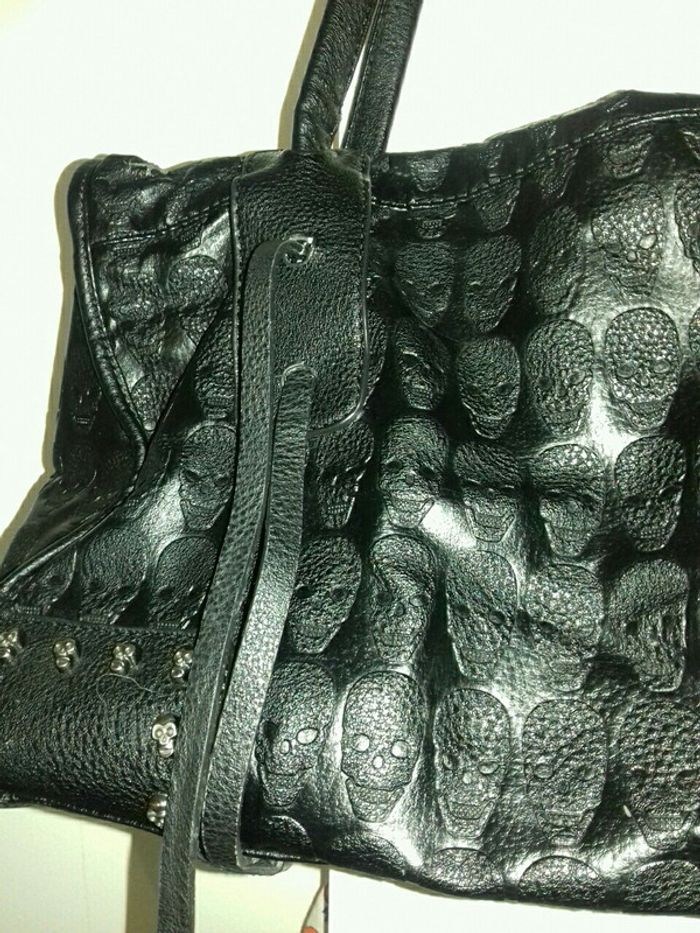Joli sac têtes de mort noir dont je me suis souvent servi c'est pour cela qu'il y a quelques traces d'usure au niveau des anses et du dessous (photos) sinon il reste en bon état et peut encore servir quelques années