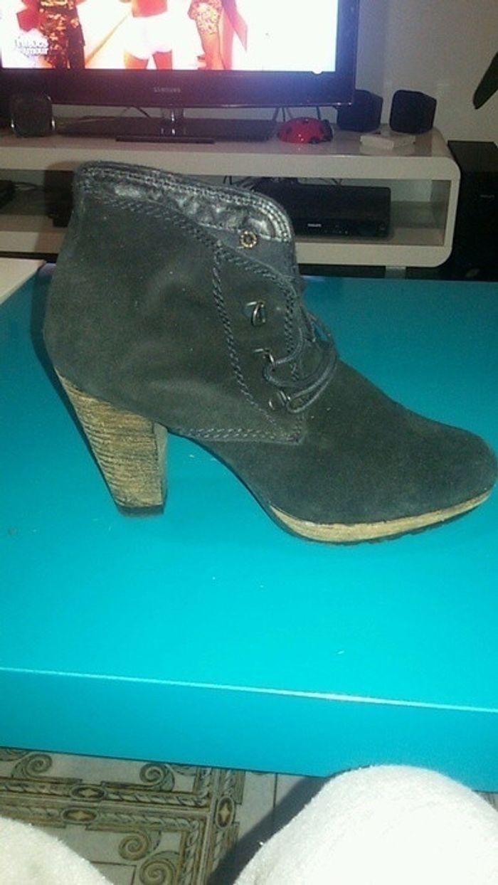 Très jolies petites bottines en daim noir très peu portées donc très bon état