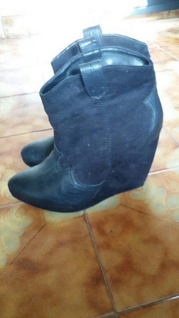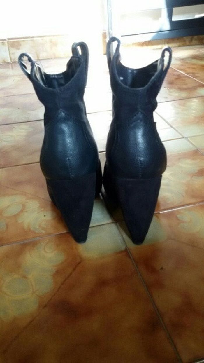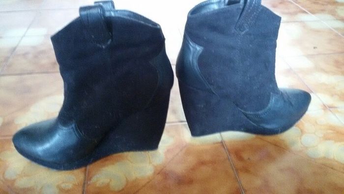 belles petites bottines compensées bershka bi matière. très jolies portées mais le talon est trop haut portées. je ne les ai mises qu'une fois elles sont en parfait état. aucun défaut