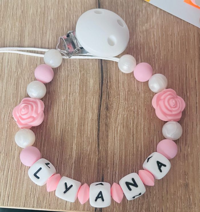 Attache tétine personnalisé en silicone ou en bois au souhait de l’acheteur . Personnalisable au choix de l’acheteur que ce soit la couleur comme le prénom ou le thème . Le fil est doublé pour plus de sécurité tout le long de l’attache tétine. N’hésitez pas à me demander et regarder mon dressing. Une photo vous sera envoyée avant l’expédition pour vous ayez un aperçu du rendu. Tous les produits sont réalisés avec du materiel spécial conçu aux bébés , enfants.