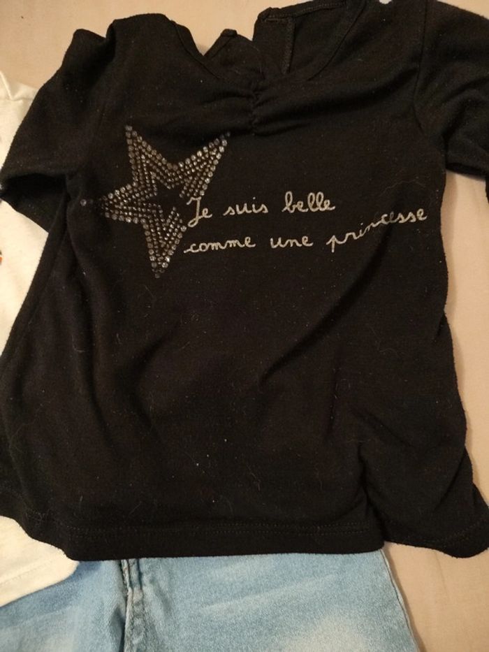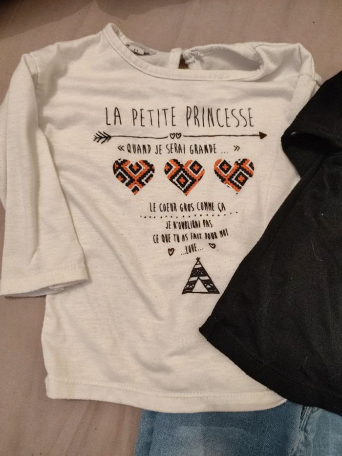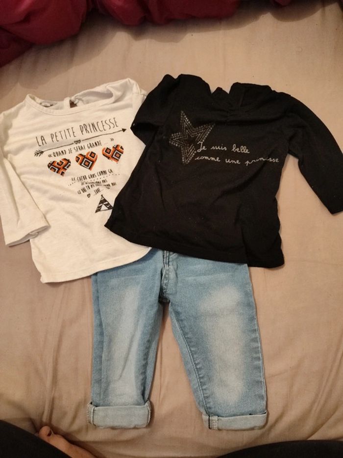 1 jean très bon état 2 t shirt manches longues un peu boulochés mais encore très bien En 12 mois #melissarnr12mois