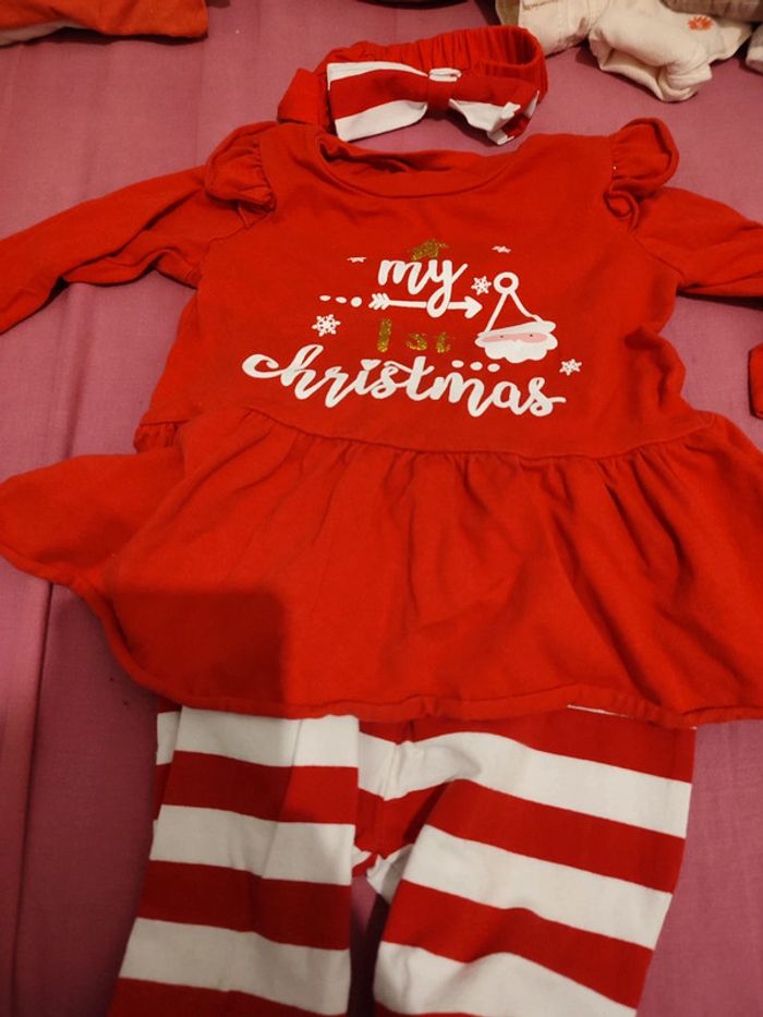 Ensemble noël 9/12 mais taille petit Très bon état 1 Tshirt long à manches longues + 1 legging + 1 bandana