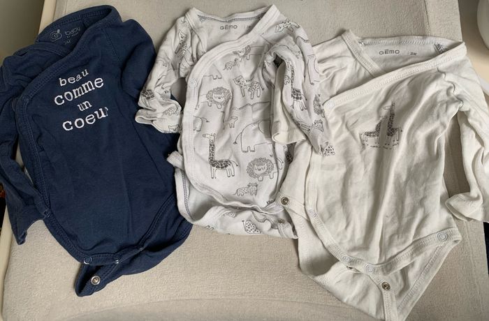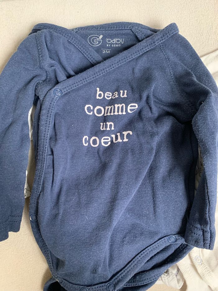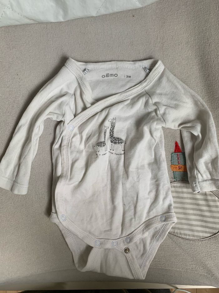 Marque Gemo. 3 mois. Le blanc est un peu passé (sur le body de droite).