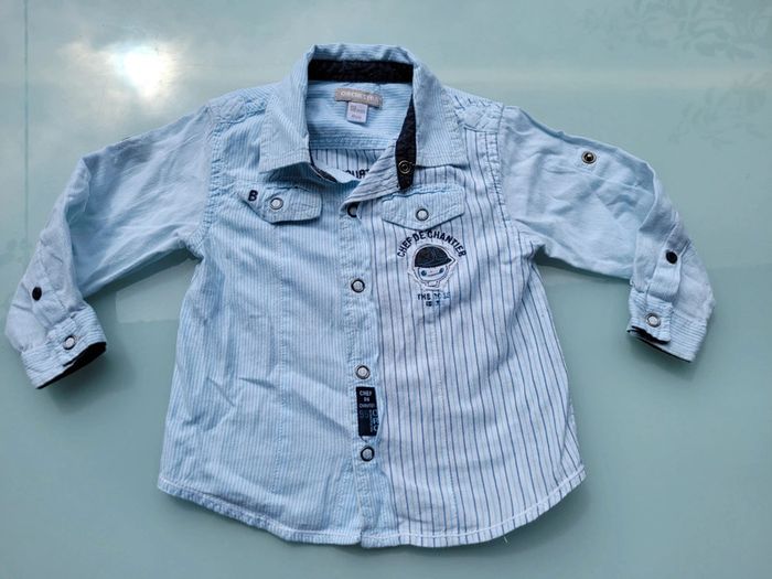 Superbe chemise manches longues Orchestra blanche Ă  rayures bleues đź‘· 18 mois