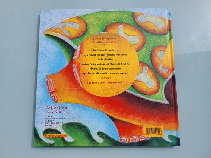« Sonnez trompettes ! Scintillez paillettes ! Voici le cirque Barbedette aux couleurs de la fête, qui réunit les plus grandes vedettes de la planète. (...) Voici Matéo l'éléphanteau ! Tout mignon, tout beau mais le coeur gros. Il rêve de faire un numéro, le plus beau du chapiteau, qui le ferait crouler sous les bravo. (...) Silence ! Les répétitions commencent ! Marcie demande à l'assistance de prendre ses distances car ils ne veulent personne pendant les séances. Non ! pas de confidence... » Livre en très bon état Pour voir mes autres livres enfants : #livreenfantmooglou