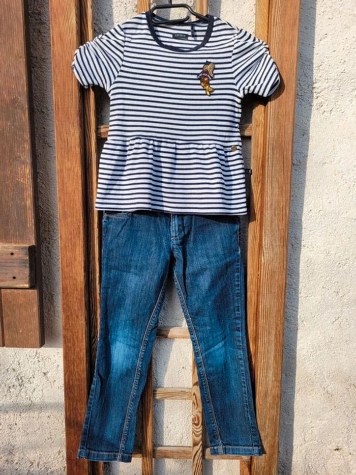 IKKS ensemble 2 pièces haut marinière manches courtes et jeans 👖 6 ans