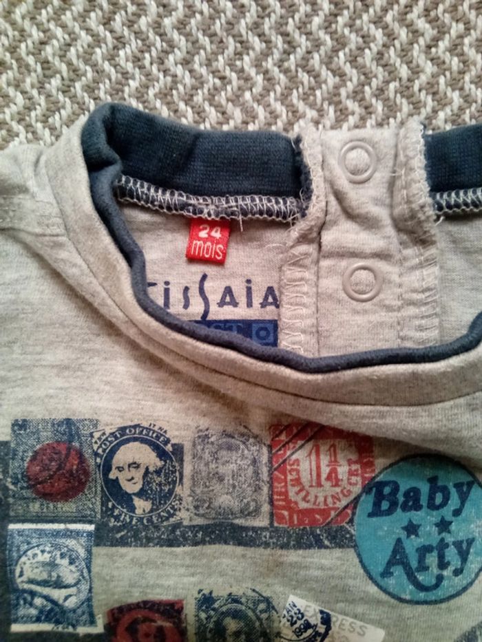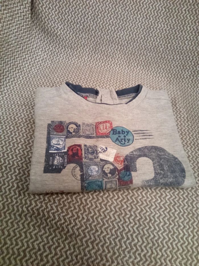 En très bon état. - Tee-shirt manches longues gris avec motif, dos uni. - 95% coton, 5% viscose, - Ouverture par boutons pressions dans le dos, - Taille 24 mois. *(Rappel : -5% pour 3 articles et -10% pour 5 articles). #sambaetmayline21Garçon24mois