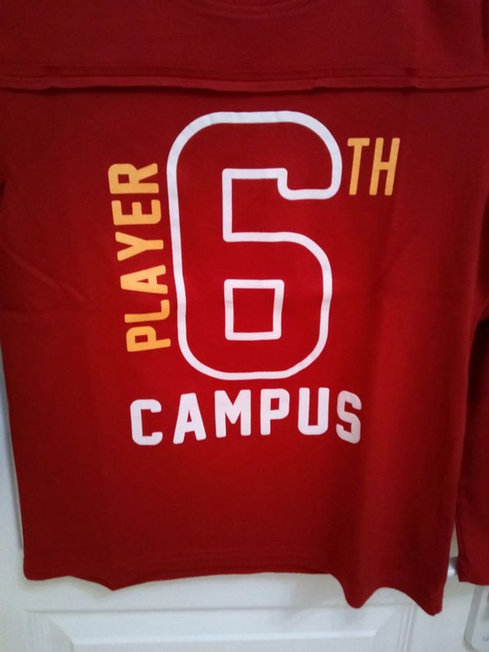 En très bon état, peu porté. - Tee-shirt manches longues rouge (légèrement épais) - Motif "Campus Player 6" devant et sur manche gauche. - Dos uni. - Taille 10 ans (Pour info, -5% pour 3 articles, -10% pour 5 articles). #sambaetmayline21Garçon10ans