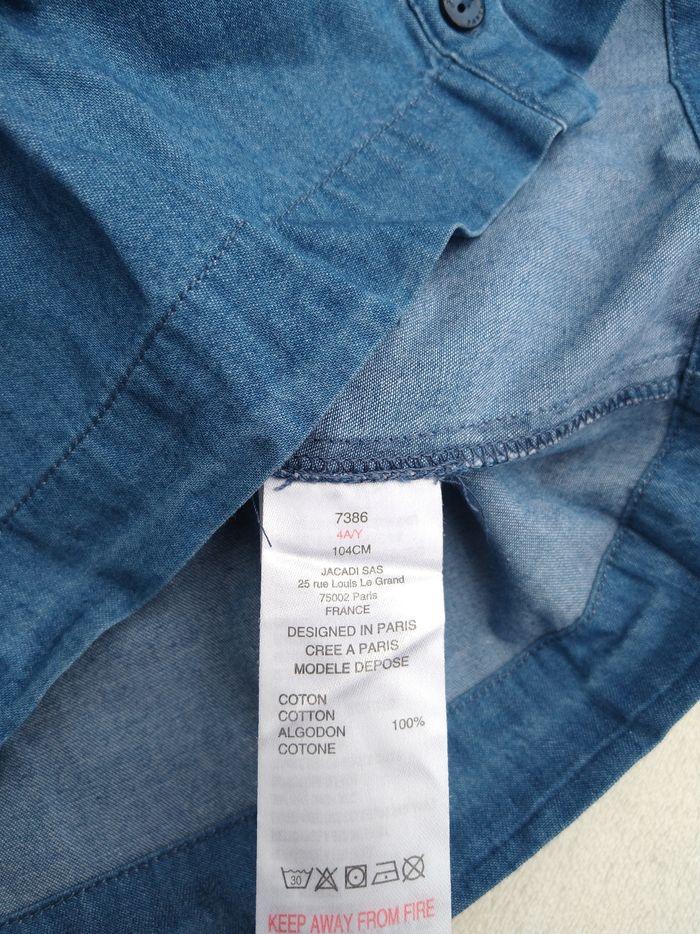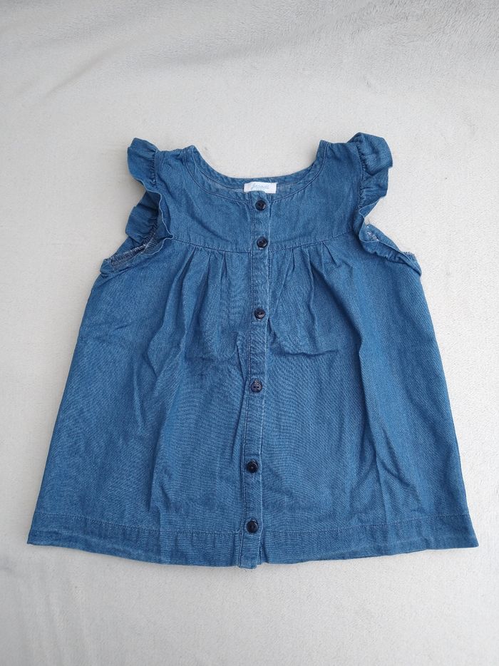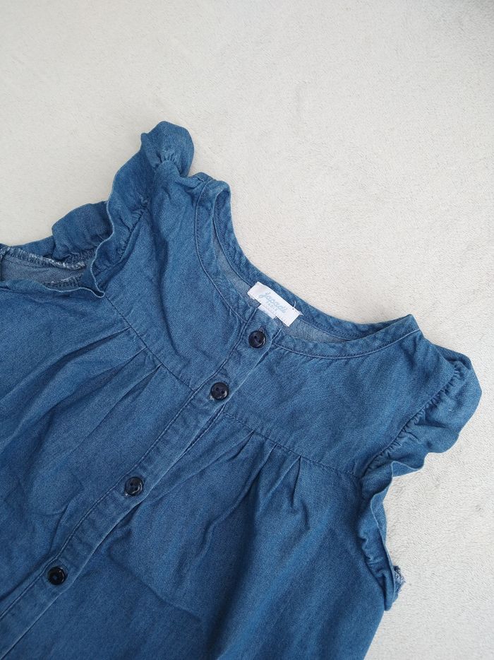 Blouse/Chemise sans manches Marque Jacadi Taille 4 ans • Coloris bleu • Fermeture par boutons • Fronces • Manches volantées • Tissu fin, imitation jean En très bon état #evelyne_filles_4ans #evelyne_filles