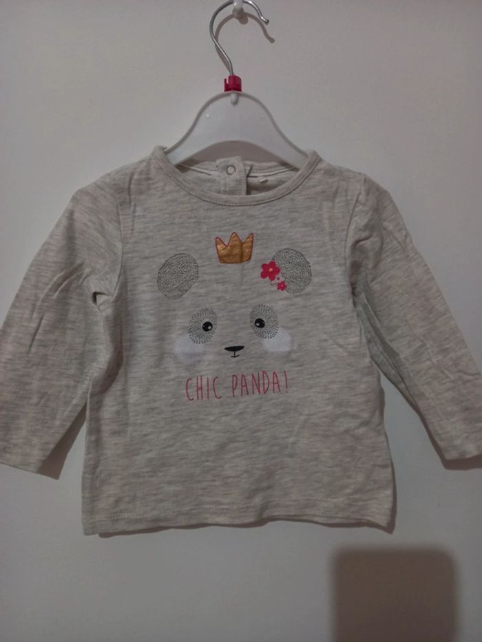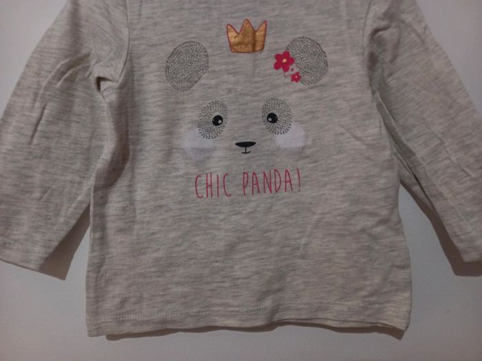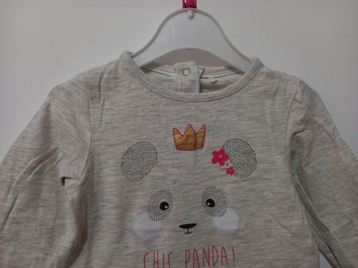 Tee-shirt à manche longue panda Comme neuf avec ouverture dans le dos 9 mois