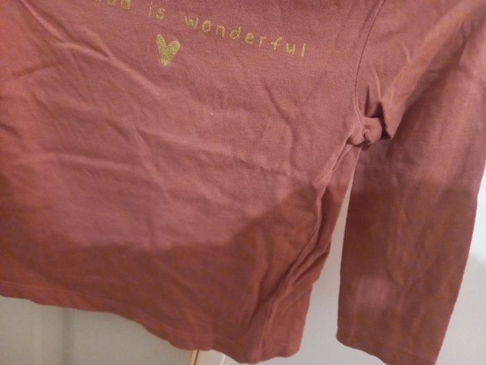 Tee-shirt Manche longue marron avec inscription en doré 24 mois Parfait etat