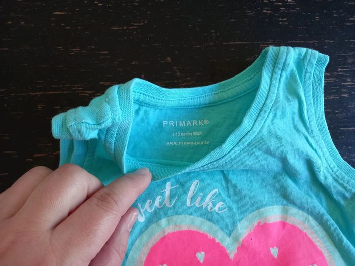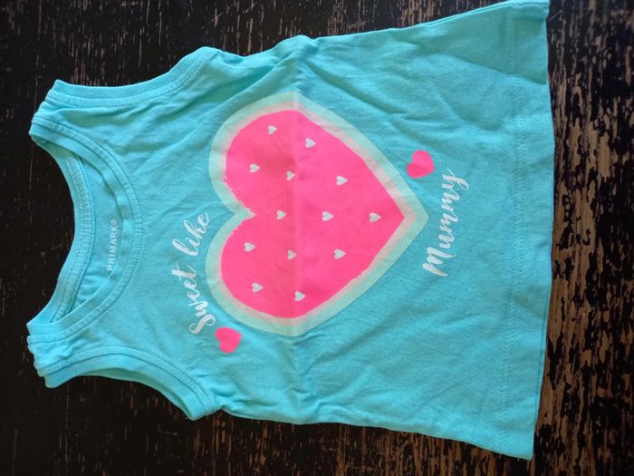 Debardeur turquoise avec motif cœur pastèque Taille primark 9-12 mois Parfait état