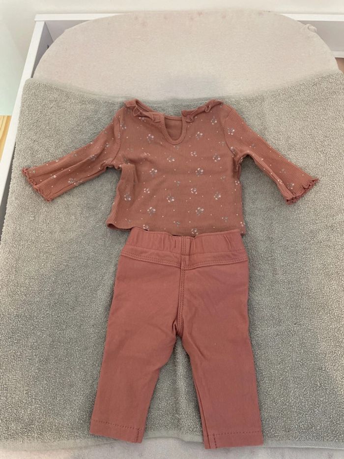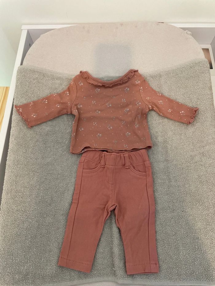 Pantalon type jean qui s’étire et son tee-shirt manches longues côtelés en Taille 1 mois. Neuf jamais porté !