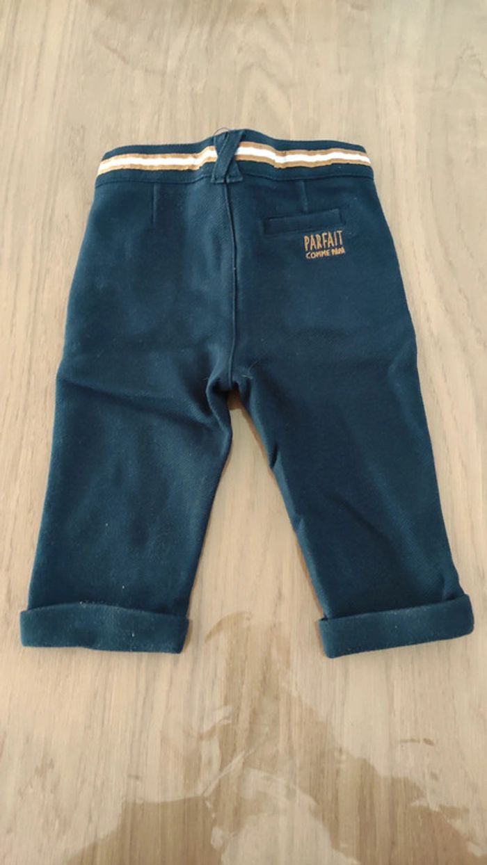 Pantalon classe avec écriture Parfait comme Papa. En très bon état sauf un peu de fil qui s'enlève au niveau du bouton (voir photo) mais qui se rattrape je pense 🙂. Taille 9 mois. ▶️ D'autres articles en 9 mois arrivent bientôt, n'hésitez pas à m'envoyer un message si vous êtes intéressé ! 🙂