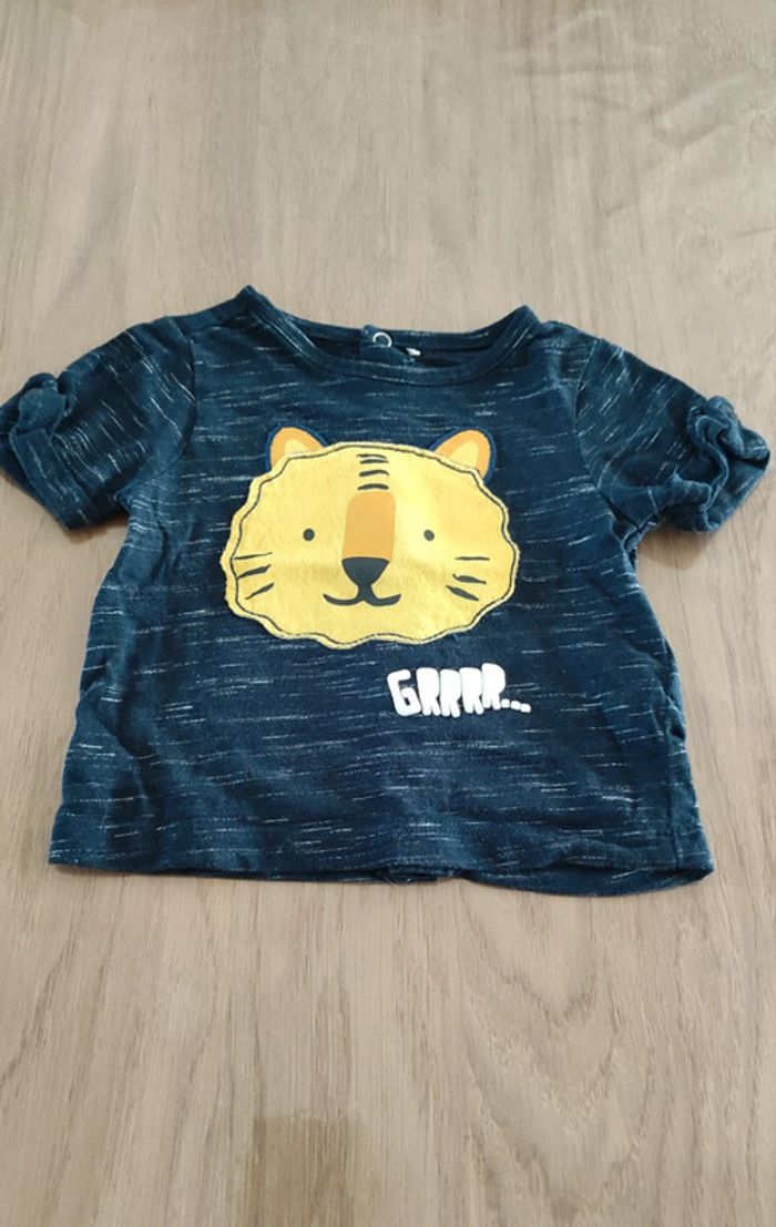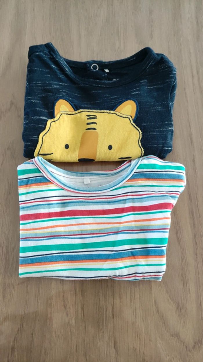 2 t-shirt manches courtes, comme neufs, très peu porté. Taille 1 mois. T shirt Lion : marque Orchestra T shirt rayé : Boboli