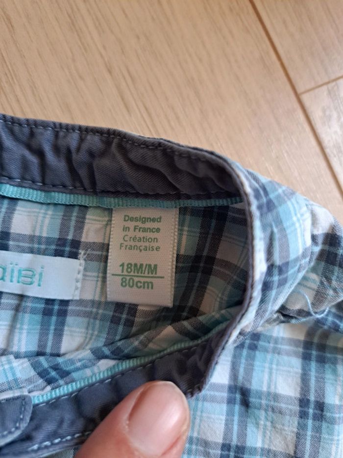 Chemise manches longues à carreaux 18 mois Marque Obaïbi Bleue #karenlepage_bebegarcon_18mois