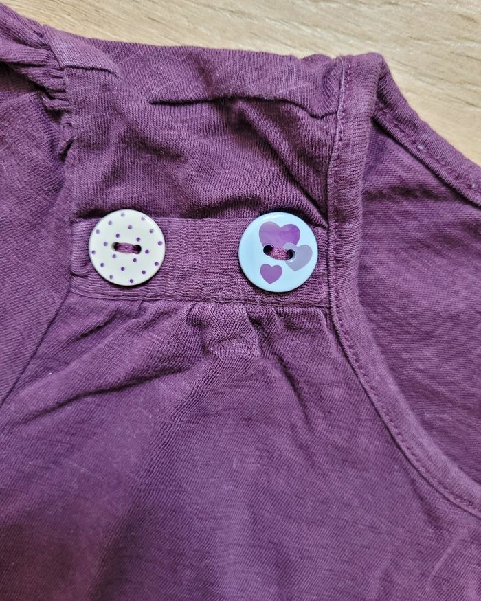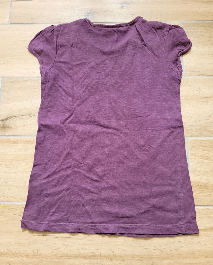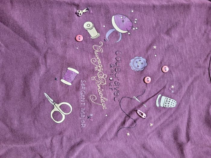 T-shirt manches courtes en coton violet avec un petit motif et quelques détails fantaisie en relief sur le devant.