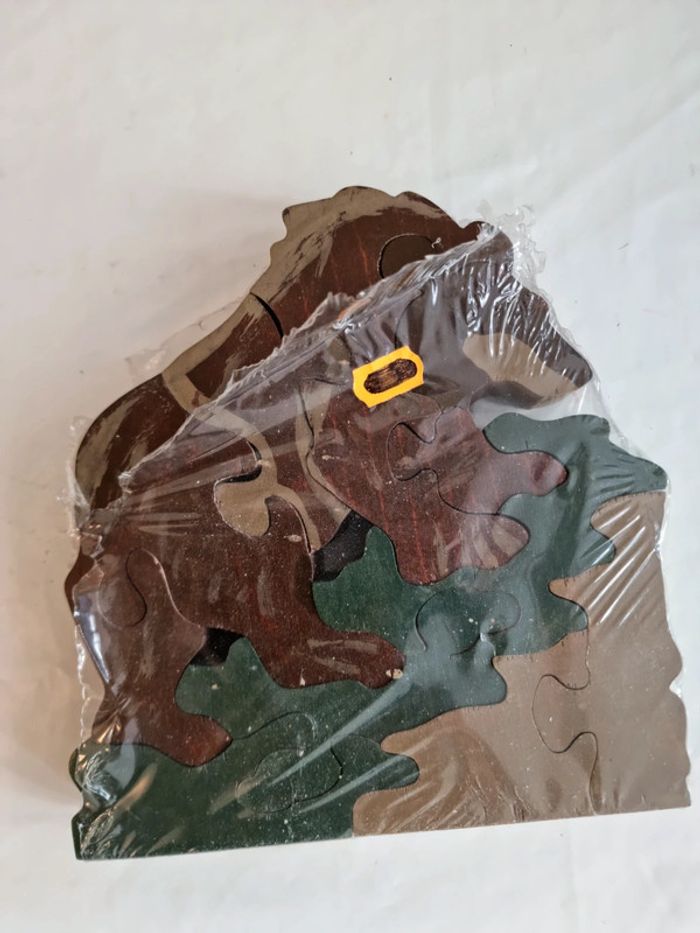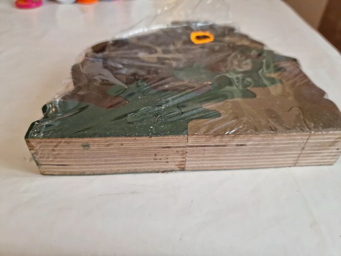Puzzle en bois Puzzle en bois massif, très épais (environ 3 cm d'épaisseur) Fabrication artisanale. Par Mr Canet, à Montsoreau, en Pays de Loire. Peint à la main avec peinture alimentaire, sans risque pour les enfants. Fait à la main, le puzzle est unique et découpé à la scie à chantourner. Puis il faut soigneusement poncer chaque pièce. Ensuite les pièces ont été peintes pour donner ce très beau puzzle. Jeu neuf sous emballage, 12 pièces Puzzle représentant un magnifique ours gravissant la montagne. #angel_enfant_jeu_puzzle